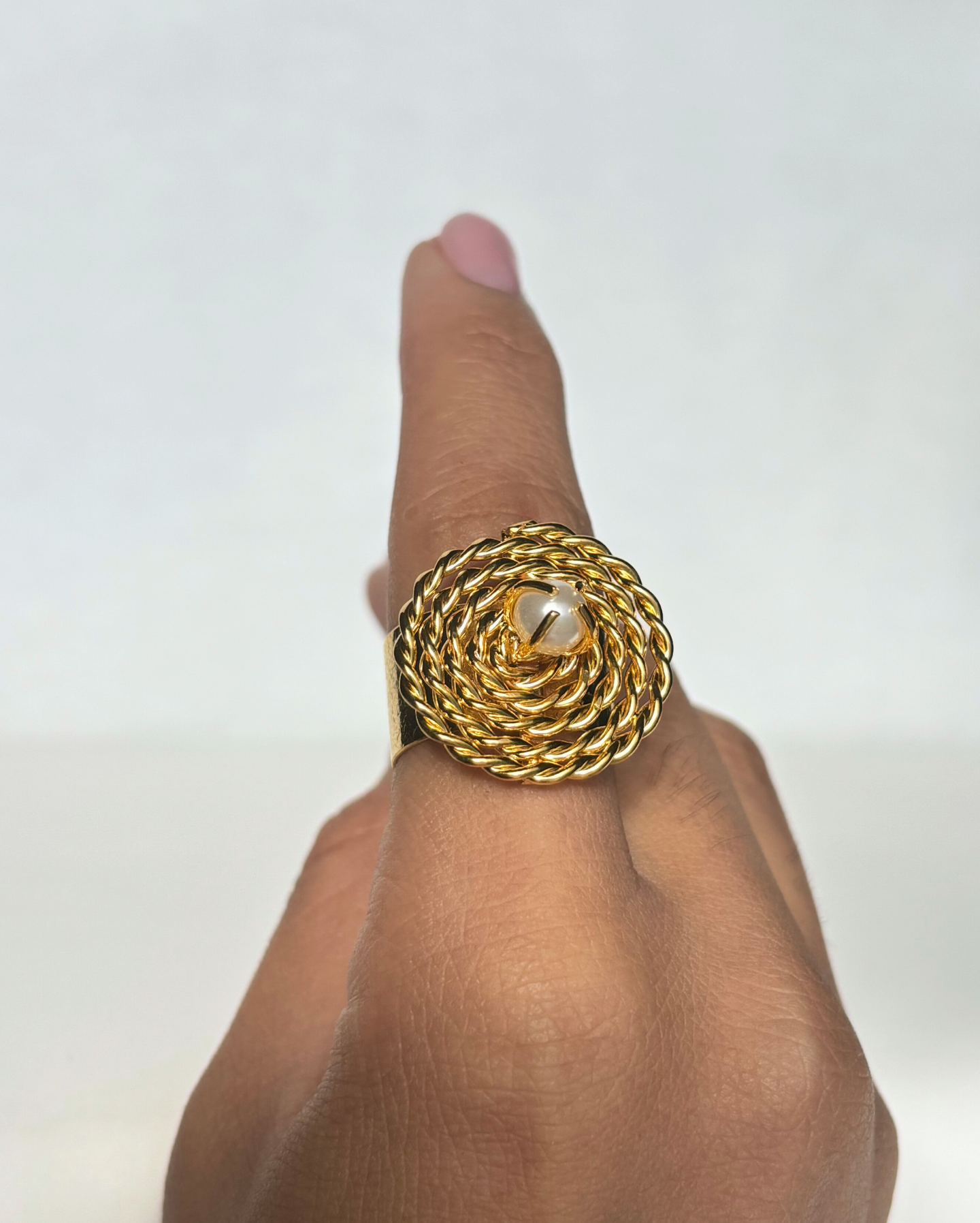 Anillo con diseño de espiral y una perla, ajustable y versátiles para toda ocasión