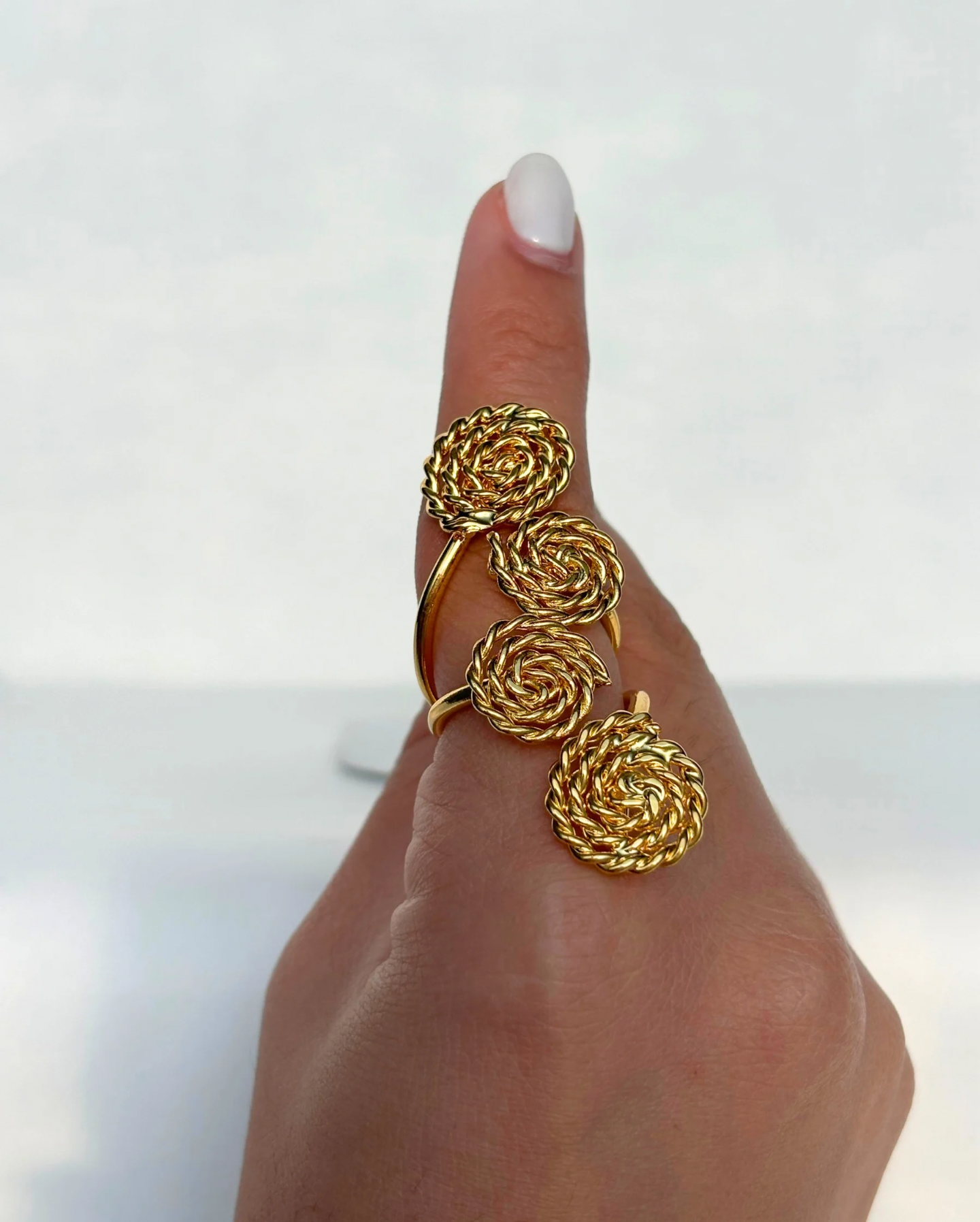 Anillo con diseño de 4 espirales pequeños, ajustable y versátiles para toda ocasión