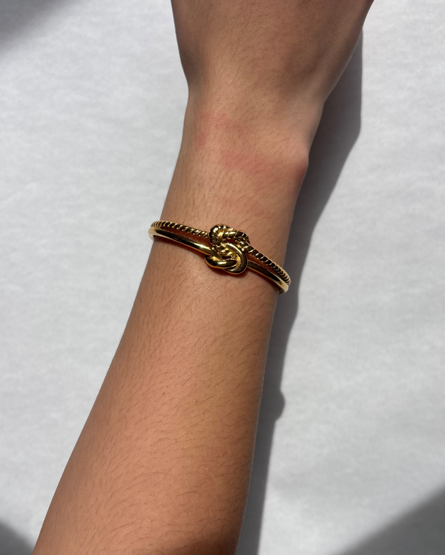 Pulsera con diseño entrelazado de liso y textura formando un nudo.