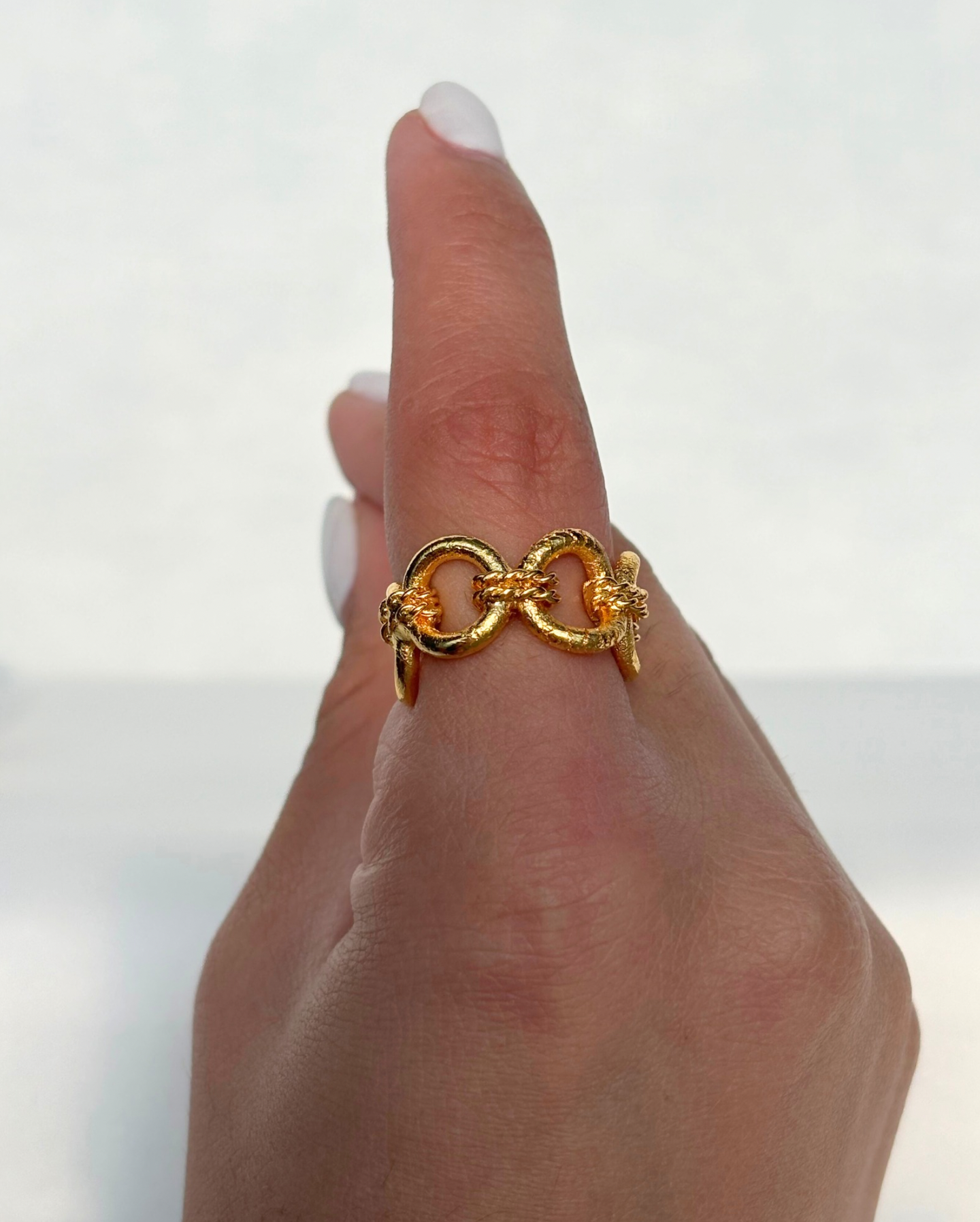 Anillo con diseño de círculos unidos con cadena , ajustable y versátiles para toda ocasión