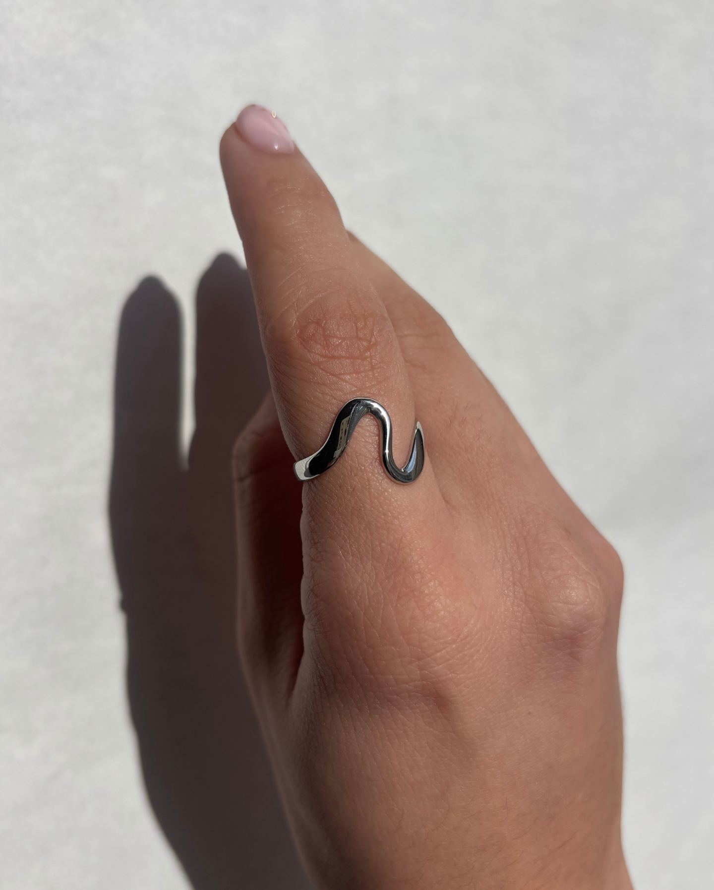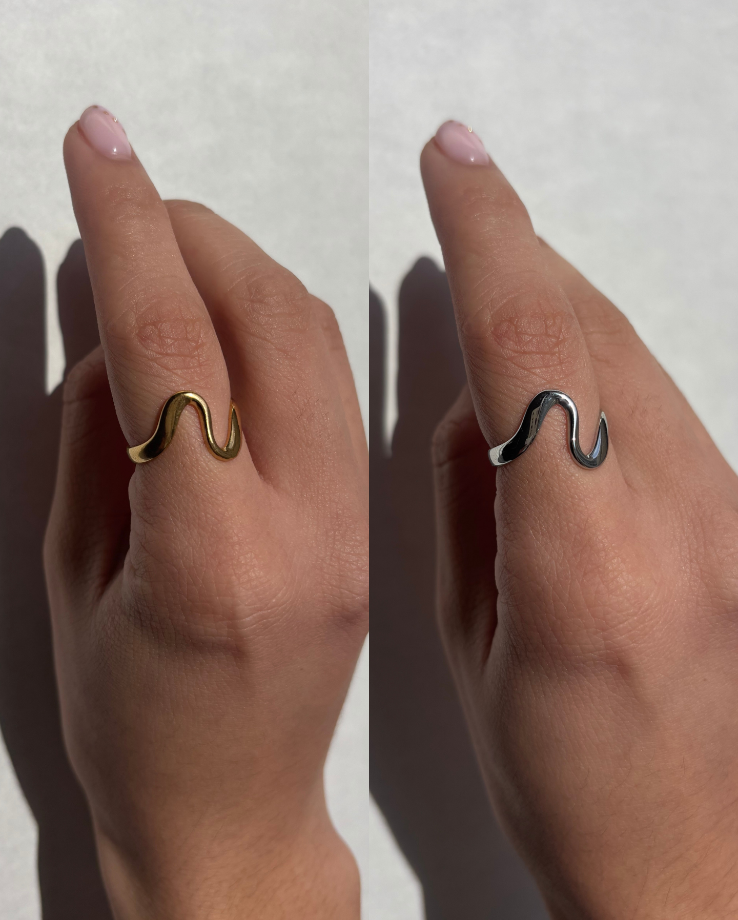 Anillo de una línea lisa, simulando una ola, ajustable y versátil para toda ocasión